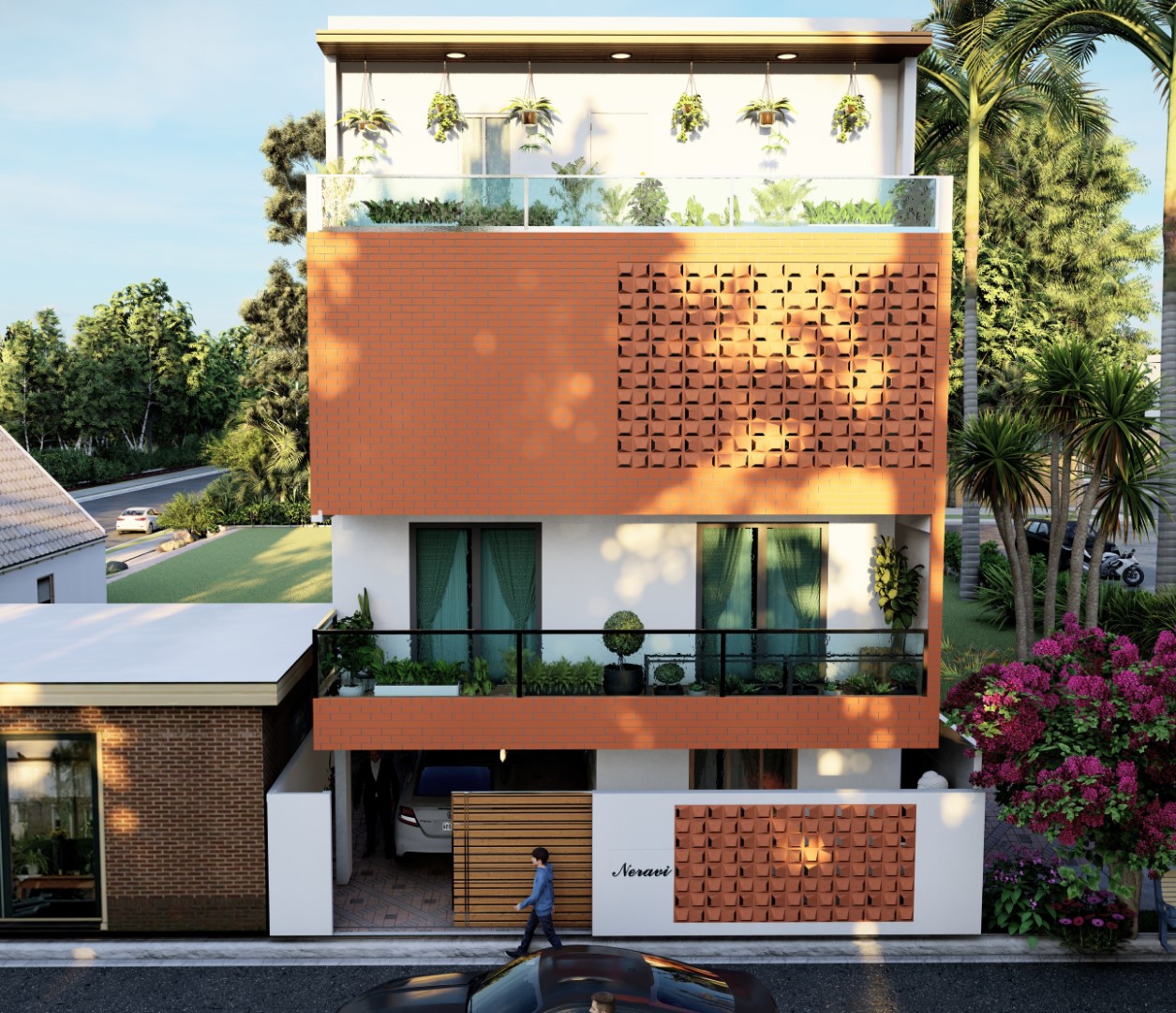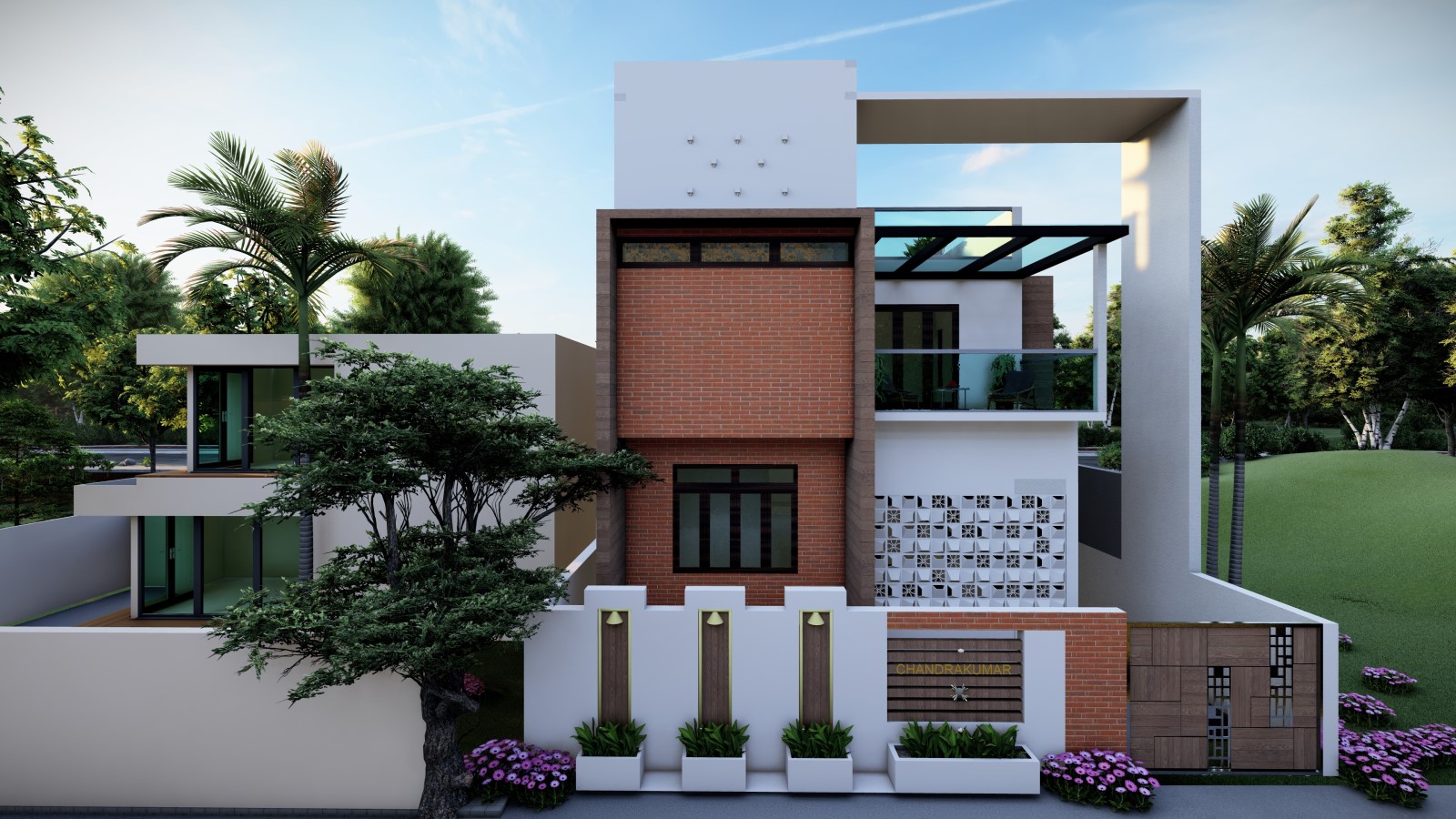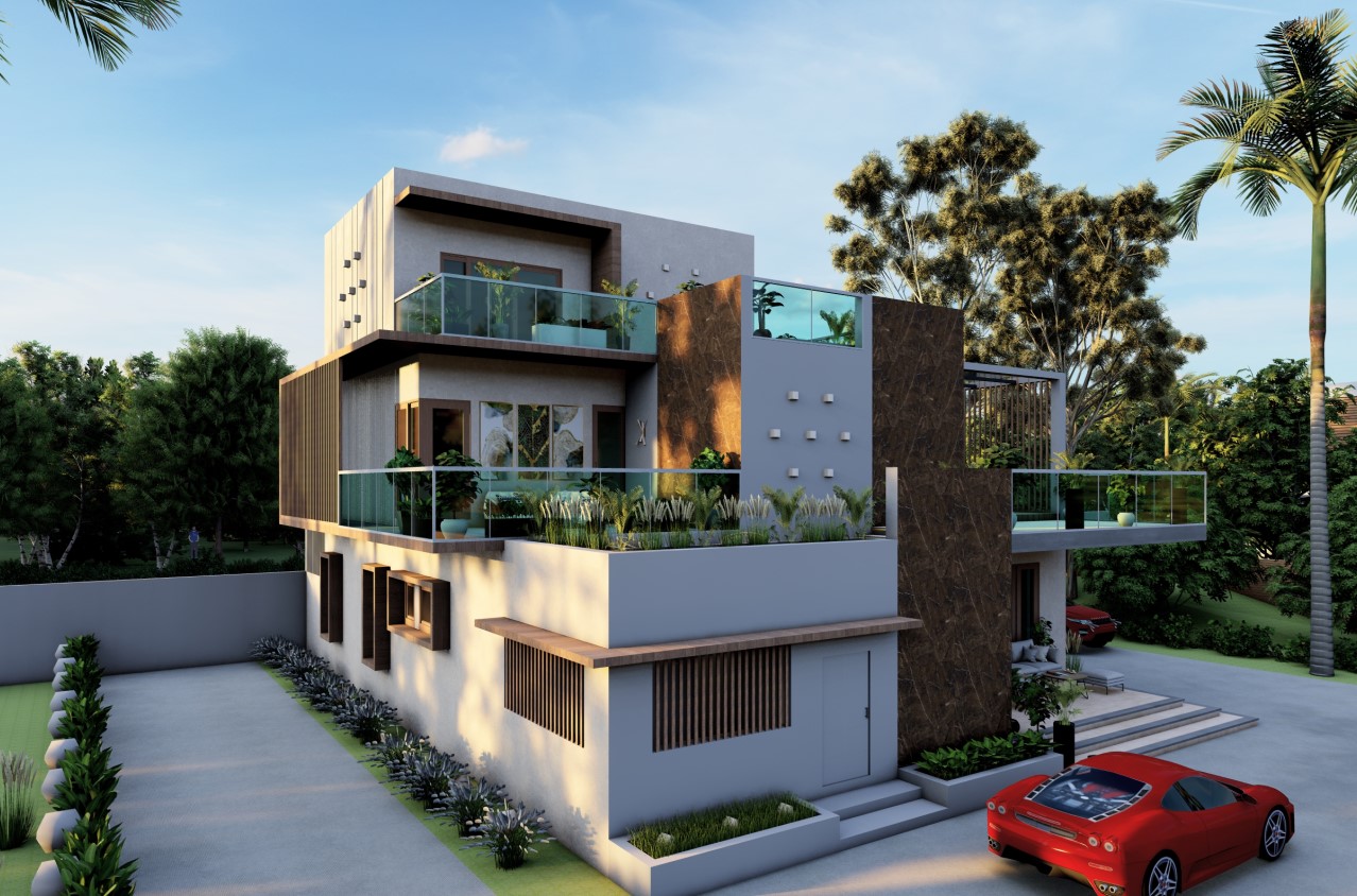 The brief stated the design to be cultural relevant as the client had a strong cultural and traditional connection. The positions of the temple room, Master bedroom, etc. were worked out as per the specifications of Vaastu. Spaces was requested by the client, where he insisted on the idea of "seeing his neighbours without being seen...
