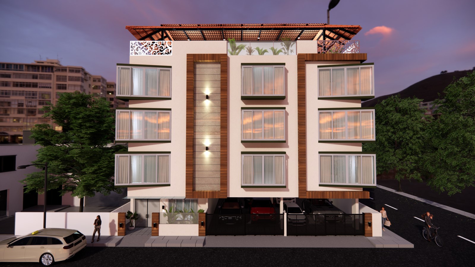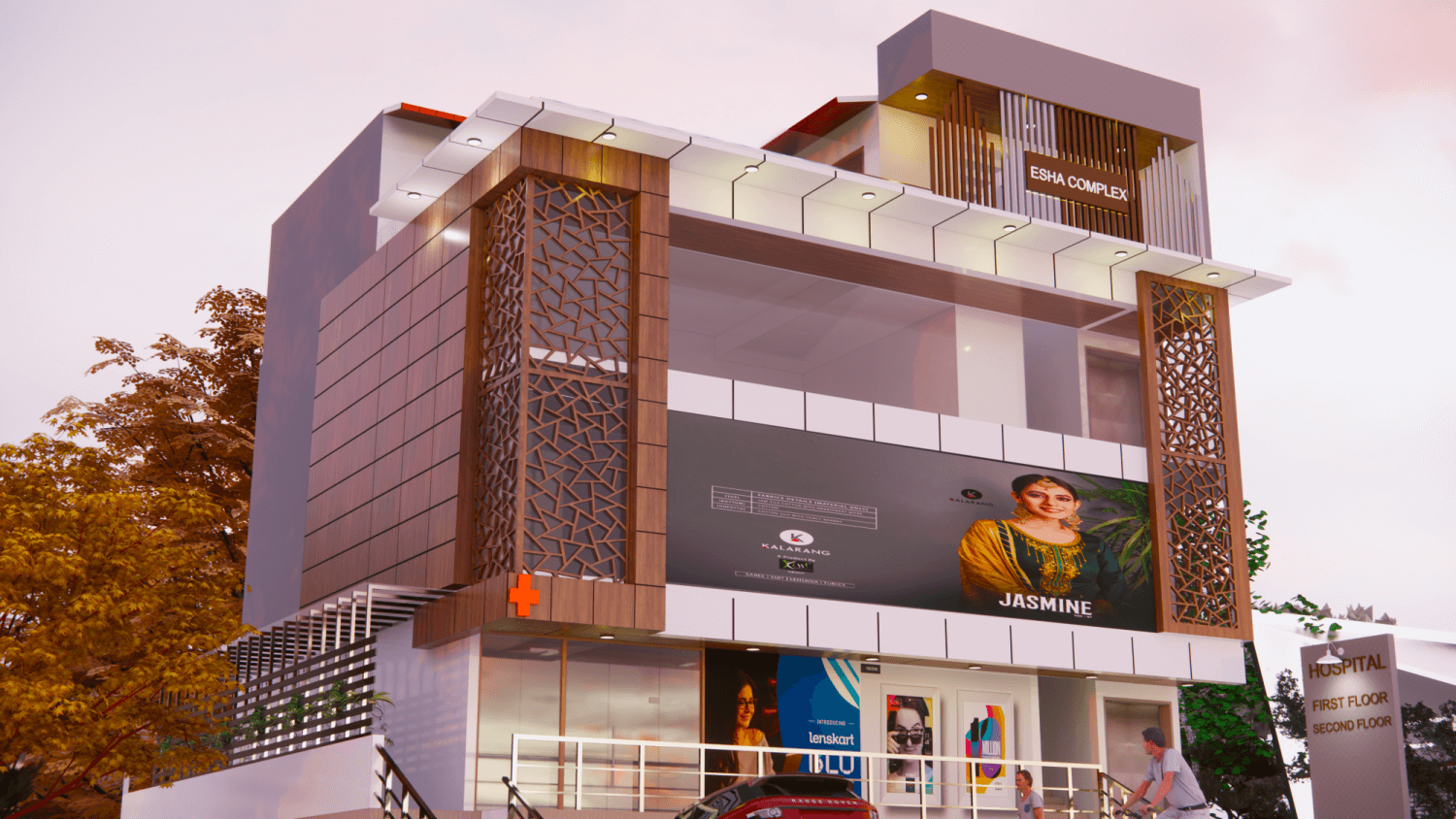 Our proposal for a hospitality on a 60x36 sqft plot in a prime location of Bangalore The basic aim was to design a hospitality building with spacious room and with basic vaastu The building has total 4 floors, G+3, the entrance is from north which open up to garden leading in to the reception area, waiting area, lift, parking...
