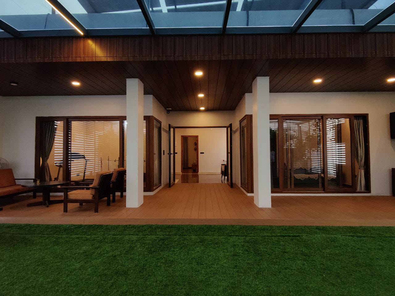 The core idea of the design was to have an Atrium with a Pooja room and all the other activities & spaces woven around it. This landscaped atrium occupies a central space allowing the facilities to place around it across the floors enhancing the visual connectivity and interaction between different areas...